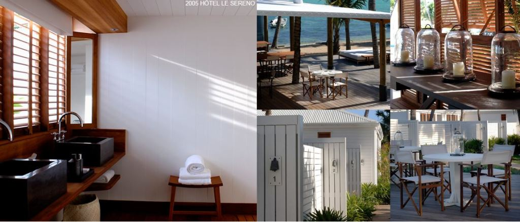 Pictures from the beach hotel Le Sereno on St. Barths. which Liagre has designed, it is certainly tasteful and sophisticated.