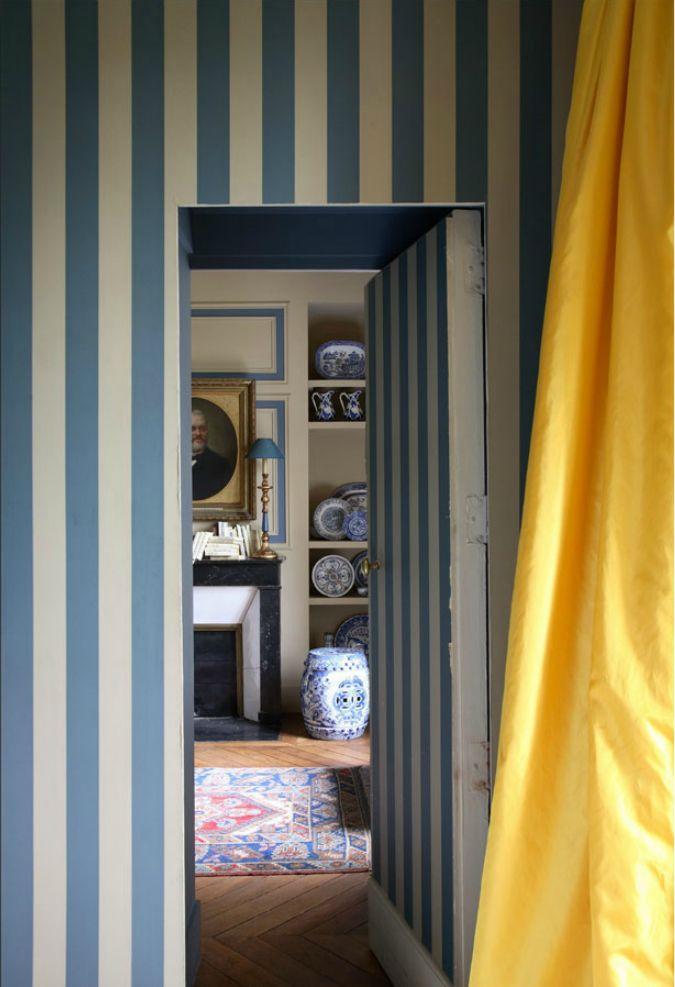 Yellow is not the most common curtain color, but look how nice it can be in the right context. It goes well with an interior where blue is the base.