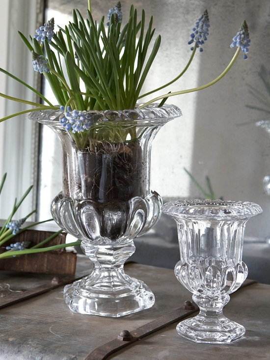 Beautiful glass vases perfect for the fragile pearl hyacinths.