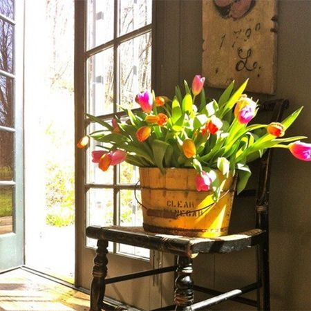 Tulips in a rustic setting, beautiful. It makes me think of Provence.