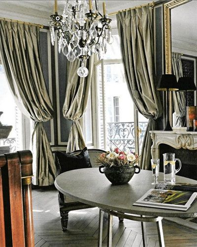 It almost looks like designer Jean Louise Deniot created this room. He also has a weakness for silk curtains.